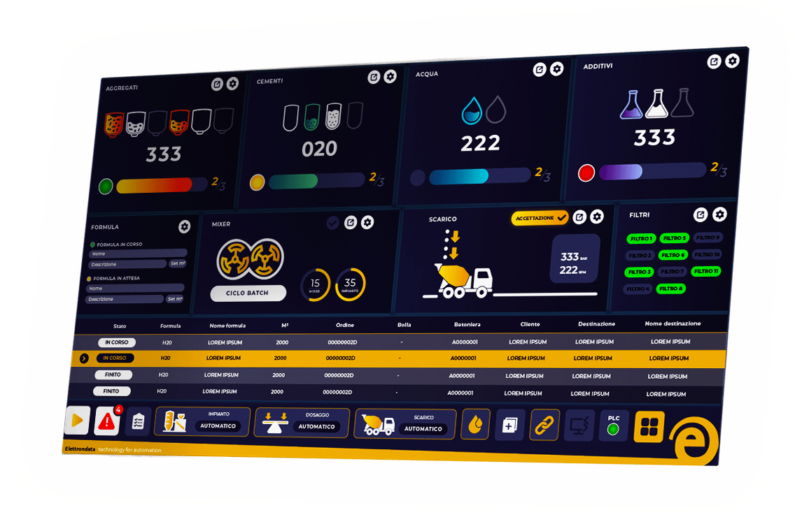 eBatch costituisce il nuovo software per la gestione automatizzata degli impianti di calcestruzzo: scalabile e modulare, è sviluppato su nuove infrastrutture tecnologiche e linguaggi di programmazione evoluti, oltre che caratterizzato da un’interfaccia innovativa, moderna, chiara e altamente funzionale.